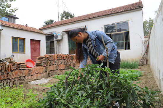 同是瓜趙村危房改造戶,19歲的趙明明正在院里灑水、摘菜,小院不大,東部菜園、西部通道,井井有條,油麥菜、菠菜、小青菜、辣椒、蔥、香菜、空心菜、梅豆角……五彩蔬菜給這個農(nóng)家小院平添了幾分溫馨和生機(jī)。
