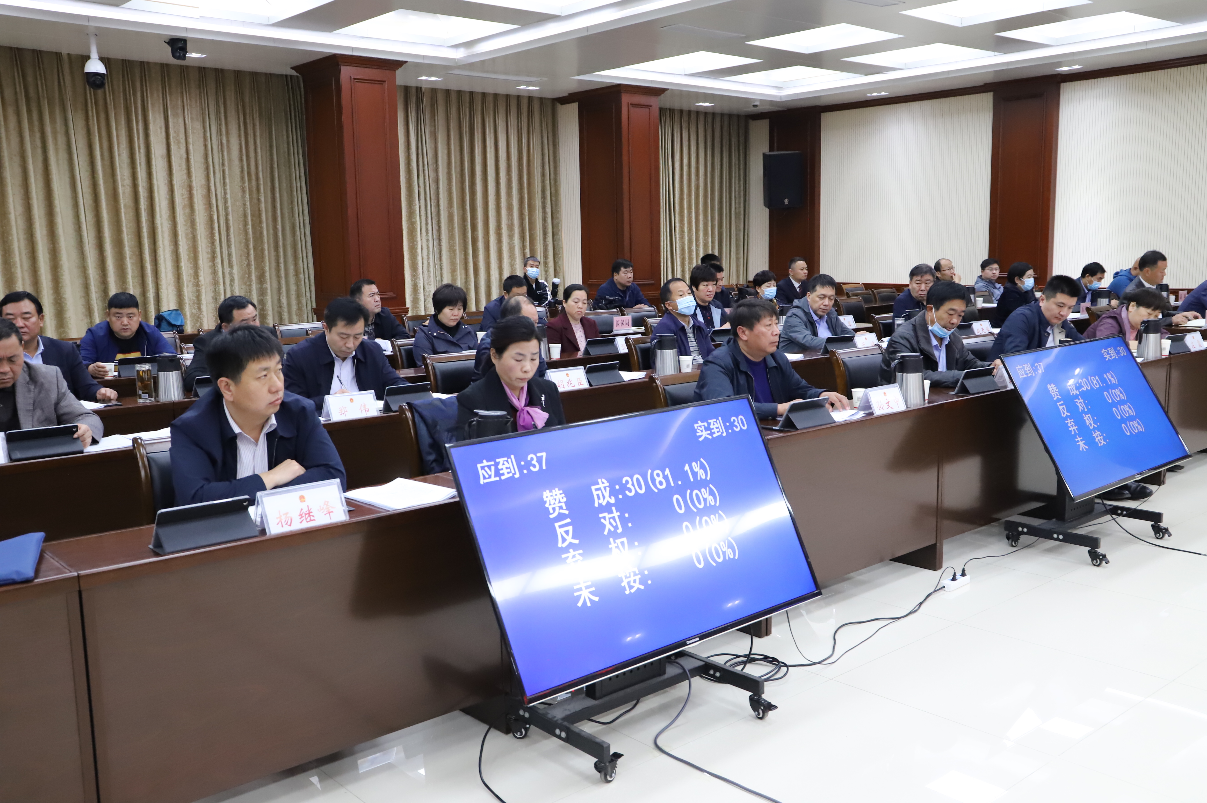 縣十四屆人大常委會應(yīng)到組成人員37名,出席會議30名,缺席7名,符合法定人數(shù)。