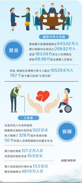 通過織牢就業(yè)經(jīng)緯線,筑牢民生之本。截至今年8月底,我省累計(jì)新增城鎮(zhèn)就業(yè)643.02萬人,累計(jì)轉(zhuǎn)移農(nóng)業(yè)勞動(dòng)力268.92萬人,促進(jìn)183.09萬失業(yè)人員再就業(yè),幫助68.98萬就業(yè)困難人員就業(yè);截至今年6月底,農(nóng)民工返鄉(xiāng)創(chuàng)業(yè)人數(shù)累計(jì)達(dá)159.71萬人,帶動(dòng)就業(yè)人數(shù)突破947.68萬人。5年來,我省牢牢守住了高校畢業(yè)生的就業(yè)“經(jīng)線”、農(nóng)民工的就業(yè)“緯線”,實(shí)現(xiàn)了就業(yè)穩(wěn)定,社會(huì)穩(wěn)定。