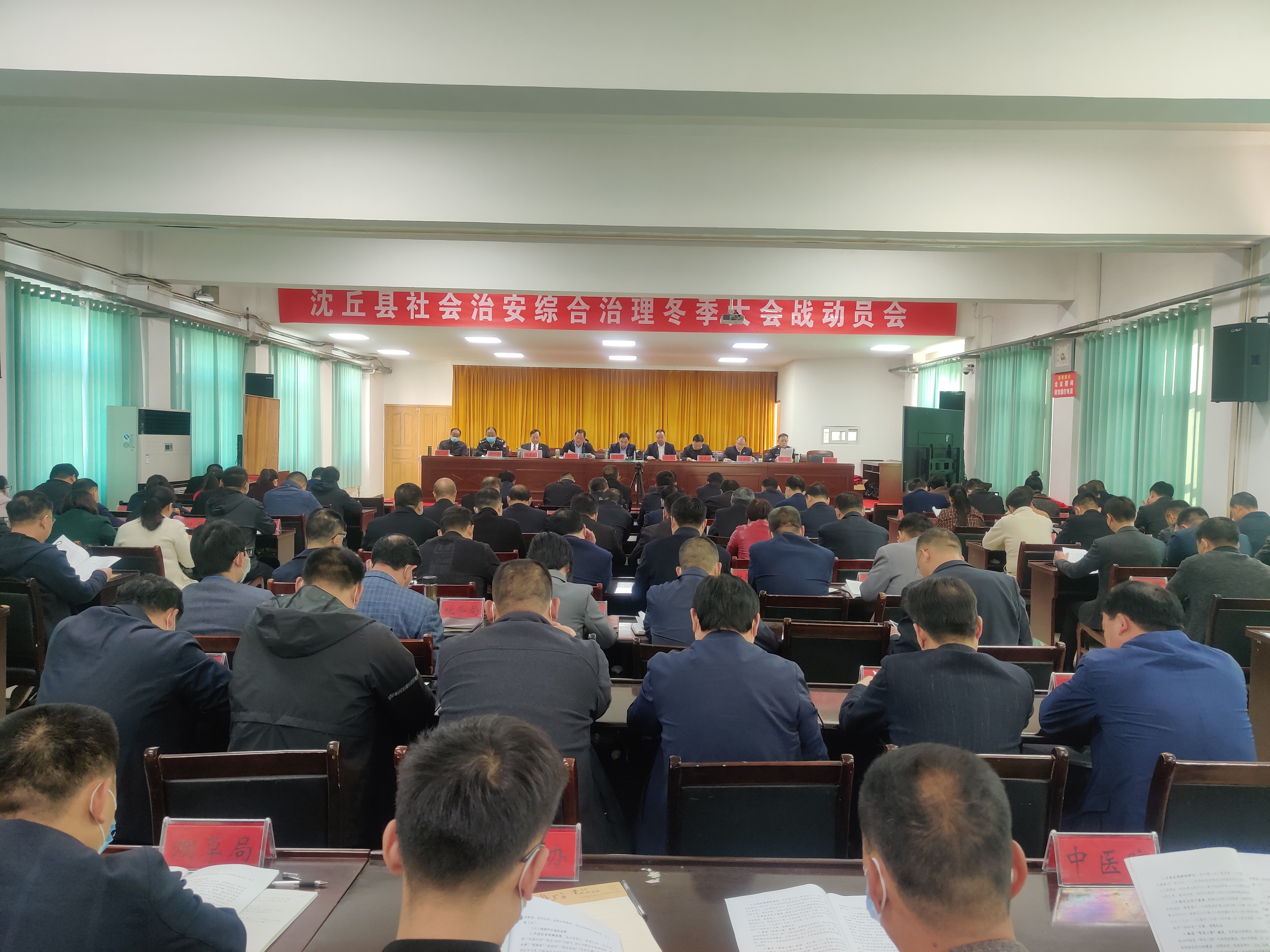11月4日,沈丘縣組織召開社會治安綜合治理冬季大會戰(zhàn)動員會。縣領導賈慶偉、段然、張銳、鹿槐生、趙振勇、李世龍、李恒新、張彥、李廣其出席會議??h直各單位及各鄉(xiāng)鎮(zhèn)(辦)主要負責人參加會議。會上,副縣長張銳宣讀了《沈丘社會治安綜合治理大會戰(zhàn)工作方案》。