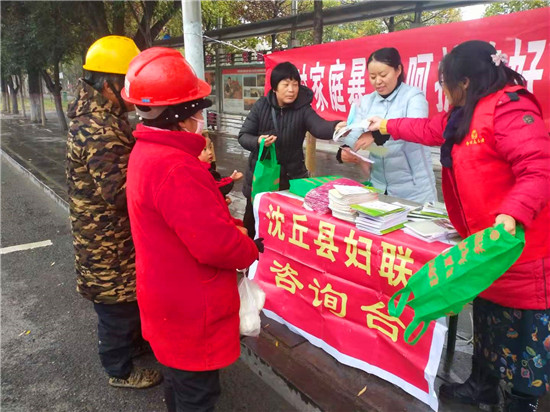 11月25日是國際反家庭暴力日。為進一步提高全社會反家庭暴力意識,加大對《反家庭暴力法》的宣傳,有效預防和制止家庭暴力,促進家庭和諧,保障婦女群眾在婚姻家庭中的合法權(quán)益。為此,沈丘縣婦聯(lián)在城區(qū)組織開展了以“反對家庭暴力,呵護美好生活”為主題的法治宣傳活動。