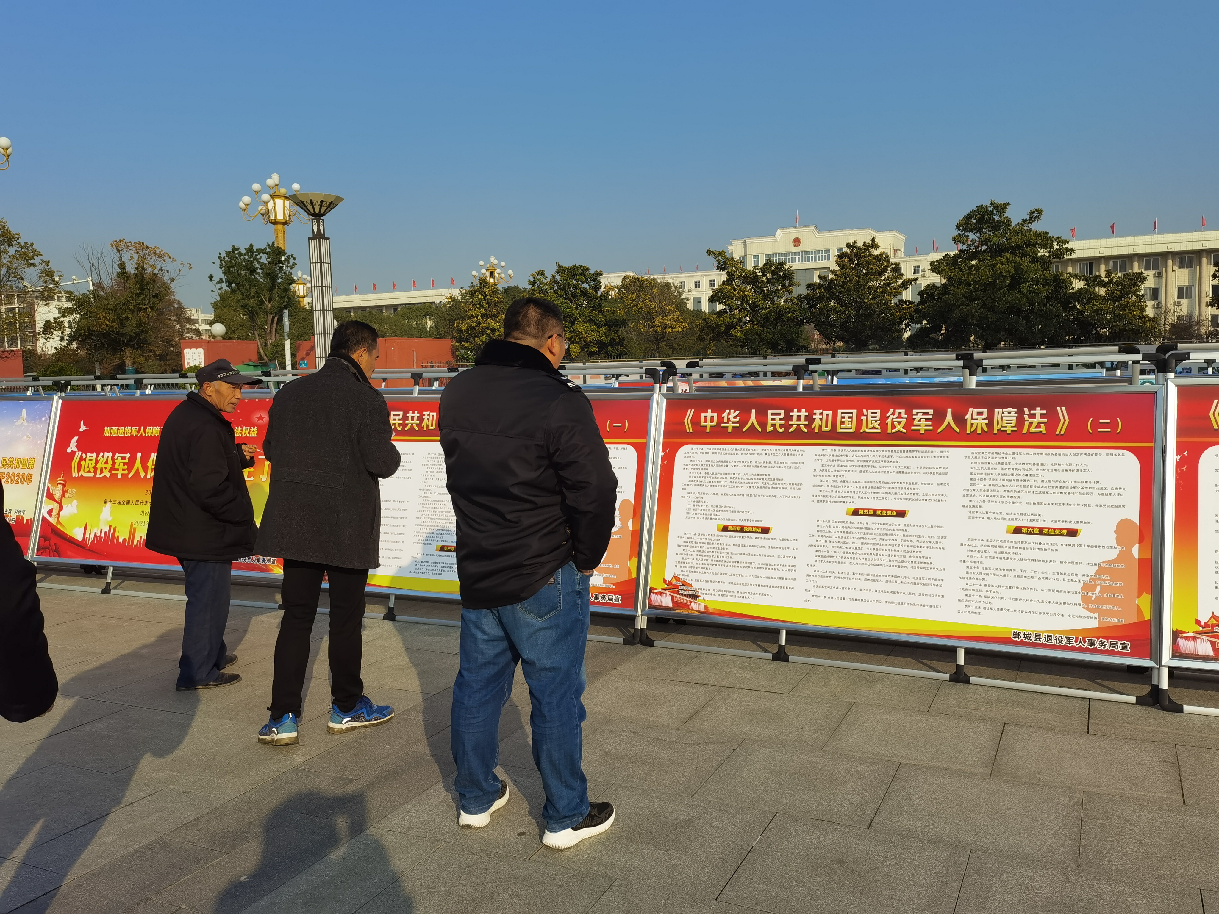 12月4日,鄲城縣退役軍人事務(wù)局黨組書(shū)記、局長(zhǎng)褚章民帶著縣退役軍人服務(wù)中心工作人員走上街頭,在人流密集的場(chǎng)所進(jìn)一步宣傳《中華人民共和國(guó)退役軍人保障法》,維護(hù)退役軍人合法權(quán)益。