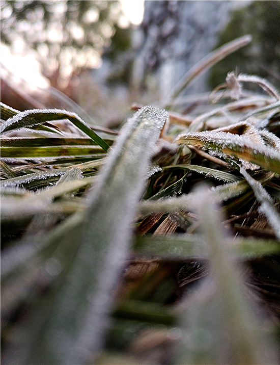 有詩云:“早寒青女至,零露結(jié)為霜。入夜飛清景,凌晨積素光?!?月6日,清晨時(shí)分,我市中心城區(qū)一層層雪白的霜花凝結(jié)在花草樹木等植物上,晶瑩剔透,令人驚艷,尤其在晨光的映照下,滿目的霜花就像一層銀光,把世界裝點(diǎn)得格外美麗。③2