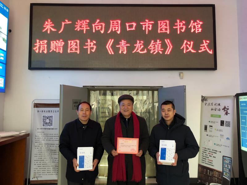 市圖書館館長李佳說,朱廣輝是我市知名作家,他一直致力于文化事業(yè),為推動(dòng)和宣傳周口文化做出了一定貢獻(xiàn)。朱廣輝將《青龍鎮(zhèn)》小說集捐贈(zèng)給市圖書館,體現(xiàn)了他濃濃的問人情懷和作為作家的社會(huì)擔(dān)當(dāng)。市圖書館希望我市作家廣泛參與捐贈(zèng),發(fā)揮圖書傳承文化、傳遞文明價(jià)值,進(jìn)一步推進(jìn)我市文化自信。②9
