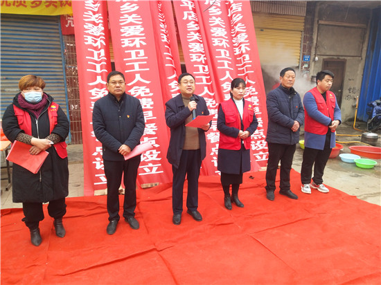 “你們是城市的美容師,每天迎來(lái)清晨的第一縷陽(yáng)光,送走傍晚的最后一片晚霞,為了平店鄉(xiāng)的市場(chǎng)街道衛(wèi)生清潔作出了貢獻(xiàn)。從今天起商水義工協(xié)會(huì)將為你們免費(fèi)提供愛(ài)心早餐,這不僅僅是為了給你們送去關(guān)心與體貼,更重要的是讓廣大群眾了解到你們的辛勞、珍惜你們的勞動(dòng)成果……”劉玉英首先講了活動(dòng)的初衷和目的。