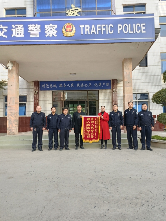 2月22日上午,太康縣公安局交警大隊(duì)院內(nèi),兩位學(xué)生家長將一面寫有“人民好交警 助人為樂新風(fēng)尚”的錦旗送到太康縣公安局交警大隊(duì)大隊(duì)長梁輝和幾名交警手中,感謝他們幫助找到走失的孩子。②8 周口日報(bào)·周道客戶端記者 張洪濤攝