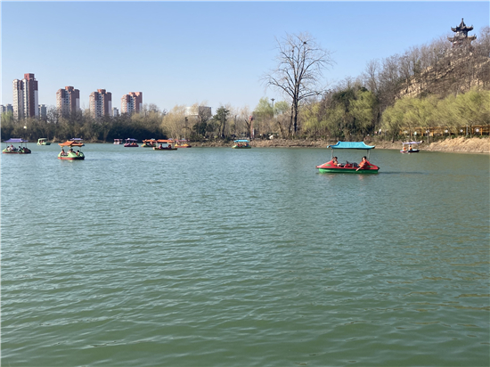 在槐香湖邊,年輕人三五結(jié)伴登上游艇,“坐船能到湖那邊的小島,島上也有槐樹,拍照肯定特別漂亮?!狈掂l(xiāng)大學(xué)生把七星島上的景色留在了自己的相機里。七星島與槐香湖相連的橋上,人潮擁擠,有的人席地而坐,觀賞著橋上的風(fēng)景。當問道在外市工作的王先生游玩感受時,他回答到:“年后上班沒時間鍛煉身體,今天我把全家人帶來登山,呼吸一下新鮮空氣?!雹?