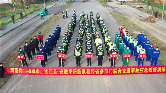 為進一步健全完善涉及危險品運輸車事故應急處置和搶險救援機制,加強省際國省道安全管控,提高突發(fā)事件應急處置和救援能力,經(jīng)共同研究決定,3月3日上午,河南省公安廳交警總隊組織周口市公安局交通管理支隊和安徽阜陽市公安局交通管理支隊聯(lián)合兩地交警、環(huán)保、消防、施救、120急救中心等多部門在兩市交界處舉行道路交通事故應急救援聯(lián)合演練,演練內(nèi)容包括接處警、交通管制、環(huán)境監(jiān)測、營救被困人員、處置?;贰⑹鹿尸F(xiàn)場勘察、事故現(xiàn)場清理等內(nèi)容。