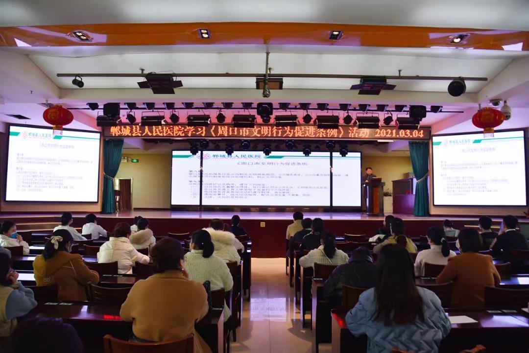 近日,鄲城縣人民醫(yī)院按照縣文明辦的要求,在全院范圍內(nèi)深入開展學(xué)習(xí)《周口市文明行為促進條例》活動。宣教科長孫小明結(jié)合醫(yī)院工作實際,對照《周口市文明行為促進條例》五章42條逐章逐條進行詳細解讀,重點強調(diào)了文明交通、文明旅游、文明餐桌、文明上網(wǎng)及窗口服務(wù)的部分條款。