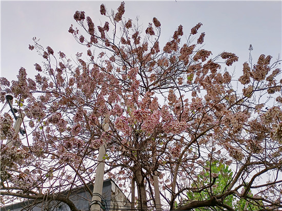 近日,中心城區(qū)建設(shè)大道旁一座院子里的梧桐樹開花了。記者看到,開滿花朵的梧桐樹花枝探出墻頭,滿樹的梧桐花美不勝收,如此畫面讓人忍不住駐足欣賞。③6
