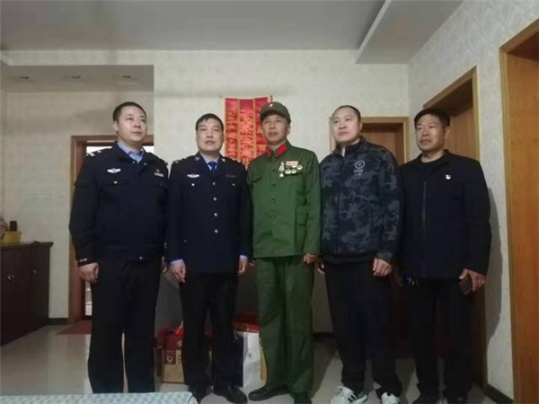 一大早,該所黨員民警身著戎裝,排著整齊的隊伍,分別前往荷花路派出所轄區(qū)的閆莊社區(qū)、荷花社區(qū)、前王營等社區(qū),探望慰問年逾花甲的抗戰(zhàn)老英雄,聆聽他們在抗擊侵略的戰(zhàn)斗歲月里浴血奮戰(zhàn)、不屈不撓的感人故事。在戰(zhàn)斗英雄尤洪亮家中,民警深切感受了那場保家衛(wèi)國反擊戰(zhàn)的慘烈,看到了新時代最可愛的人。
