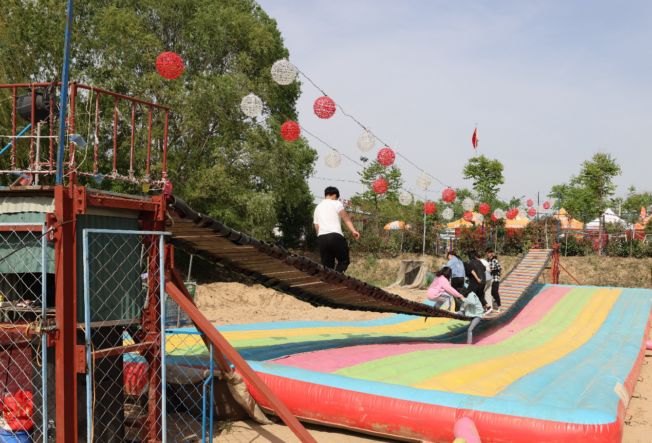 這個度假村建于2020年初,占地100多畝,擁有50多項娛樂休閑項目,包括蒙古包、農(nóng)家院等,整個游樂場處于沙灘之中,萬里平原之中的沙灘風(fēng)情更有韻味。來看看這里都有啥好玩的?