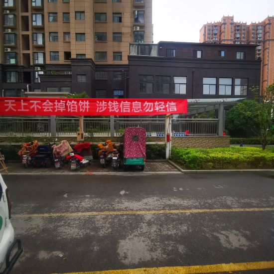 據(jù)介紹,“金色東方”小區(qū)建成于2014年,占地120畝,居住人口2516戶,共8176人。廣場是小區(qū)里最熱鬧的地方。這里不僅擺放著詐騙案例展板,而且LED大屏上反復播放“局長說反詐”視頻,時刻提醒居民繃緊防詐弦。通過張貼標語、擺放展板、播放視頻等形式,“金色東方”小區(qū)營造了全方位反詐的濃厚氛圍,基本達到“處處有提醒”的效果。據(jù)悉,2月份以來,該小區(qū)未發(fā)生一起電信網(wǎng)絡詐騙案件。