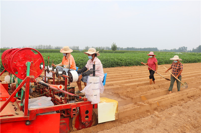 菜苗補(bǔ)栽全面展開。在韭園鎮(zhèn)蔬菜種植大戶李興華的胡蘿卜基地,2臺(tái)進(jìn)口大型播種機(jī)、起壟機(jī)來來回回,拉滴灌管的農(nóng)民工滿頭大汗搶播搶種。截至目前,全縣設(shè)施蔬菜改種補(bǔ)種2600余畝,修復(fù)大棚982座,6個(gè)重點(diǎn)育苗基地已恢復(fù)育苗能力,近期已育苗800萬株。