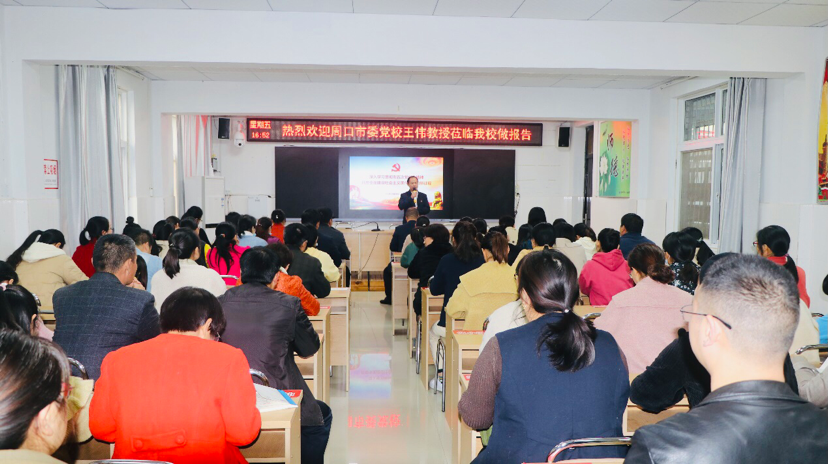 宣講會上,市委黨校宣講團(tuán)講師王偉以“深入學(xué)習(xí)貫徹市五次黨代會精神、開啟全面建設(shè)社會主義現(xiàn)代化周口新征程”為主題,從充分認(rèn)識市五次黨代會的重大意義、準(zhǔn)確把握市五次黨代會的精神要義、全面落實(shí)市五次黨代會的目標(biāo)任務(wù)三方面,詳盡解讀了市五次黨代會主旨報(bào)告的精神實(shí)質(zhì)和豐富內(nèi)涵。整場報(bào)告脈絡(luò)清晰、論述深刻、內(nèi)容豐富,既有深入淺出的理論闡述,又有結(jié)合我市發(fā)展的實(shí)例分析,更有教育實(shí)踐層面的對策思考,為該校教職工深入、完整、系統(tǒng)地領(lǐng)會市五次黨代會精神,有力推進(jìn)貫徹落實(shí)黨代會精神提供了一把“金鑰匙”。