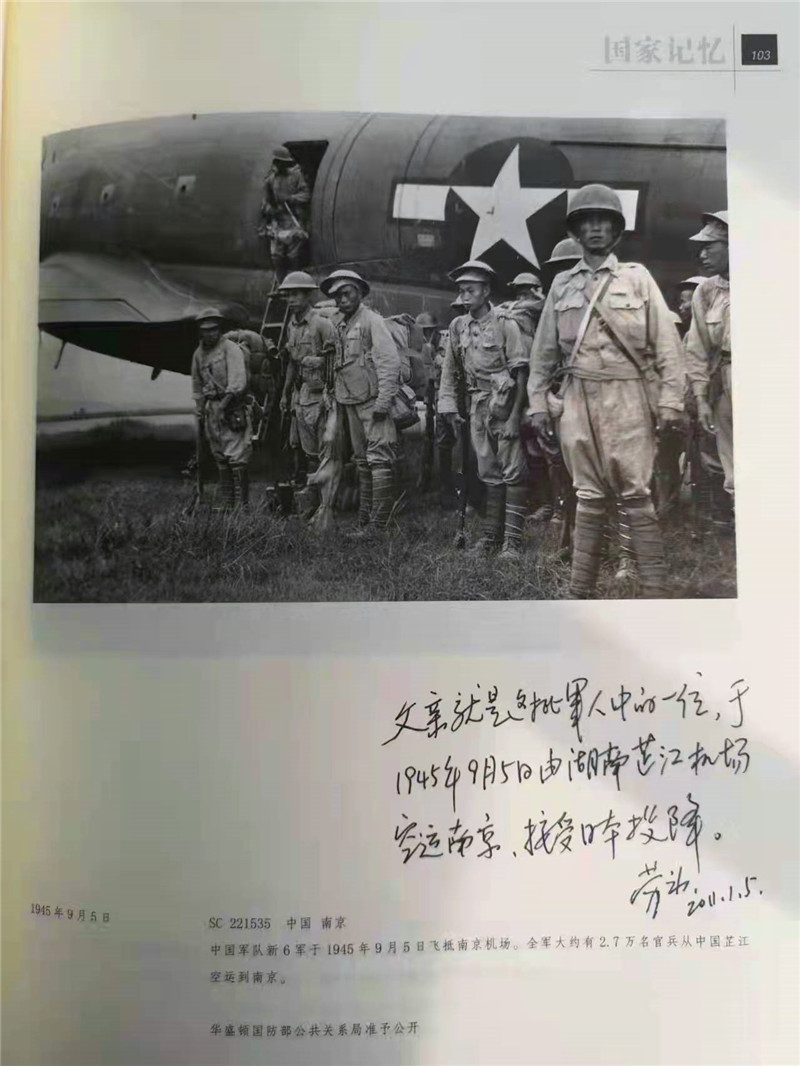 1945年3月,父親隨干訓(xùn)團(tuán)空運回國,駐扎云南曲靖,繼續(xù)訓(xùn)練、待命。1945年8月15日,日本投降。干訓(xùn)團(tuán)全體官兵乘汽車到達(dá)湖南芷江機(jī)場(插圖5),再空運到南京,參加南京日本受降儀式(插圖6) 。