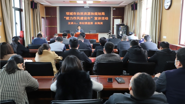 近日,項城市自然資源和規(guī)劃局開展“能力作風建設(shè)年”主題宣講活動,特邀請項城市紀委監(jiān)委宣傳部宣講師余海濱前來授課。