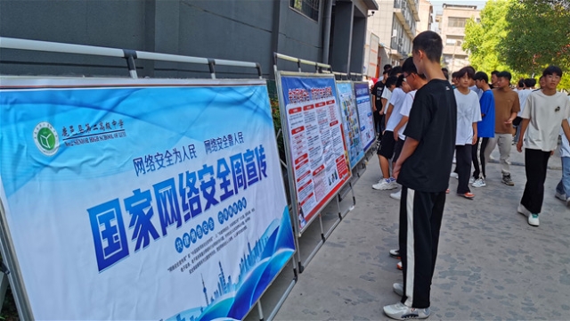 • 9月6日是國(guó)家網(wǎng)絡(luò)宣傳周校園日,鹿邑縣第二高級(jí)中學(xué)校園里整齊地?cái)[放出數(shù)塊制作精美、內(nèi)容充實(shí)的網(wǎng)絡(luò)安全宣傳展板,引起師生們駐足觀看。