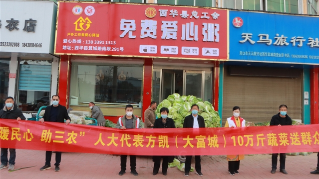 “中國(guó)好人”、周口市人大代表方凱幫助黃橋鄉(xiāng)菜農(nóng)解決蔬菜滯銷(xiāo)難題,并通過(guò)西華縣紅十字會(huì)向這些單位捐贈(zèng)10萬(wàn)斤蔬菜,讓滯銷(xiāo)菜變“暖心菜”。方凱的這一舉動(dòng),受到群眾的稱(chēng)贊。