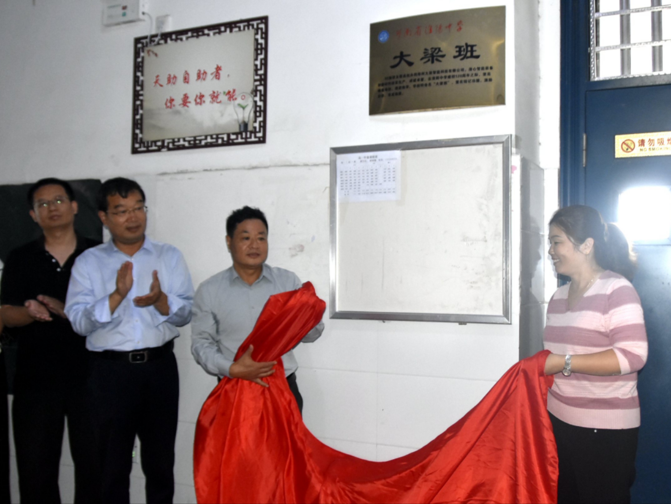 最后,梁亮和班主任程艷麗老師一起為“大梁班”揭幕,與會(huì)人員和班級(jí)全體同學(xué)見(jiàn)證了這一歷史時(shí)刻。