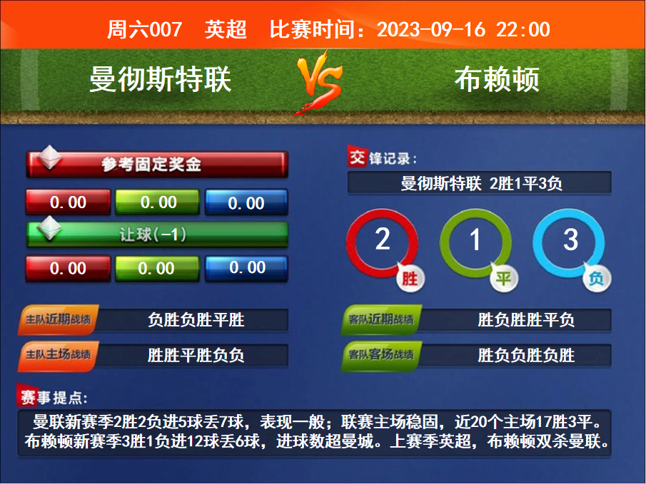 周六007 英超 曼徹斯特聯(lián)VS布賴(lài)頓