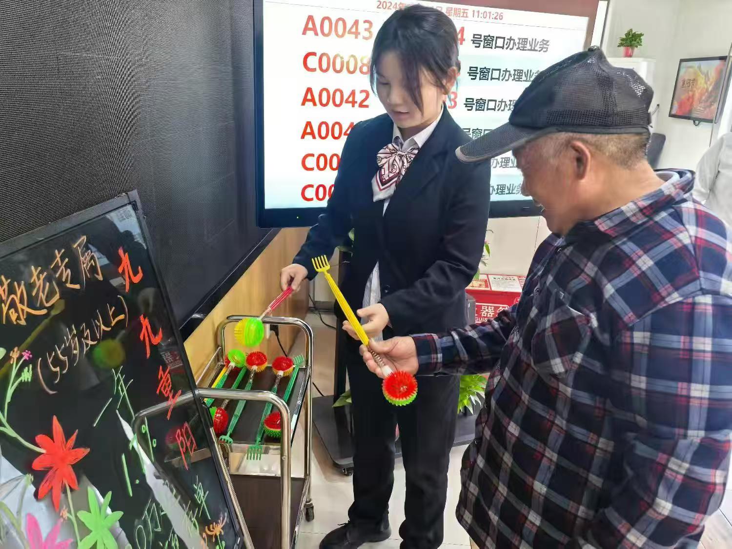 該行深入貫徹落實“工行驛站”服務民生,做好“五篇大文章”,以“引進來+走出去”和“線上+線下”聯動方式,依托網點資源稟賦,圍繞年長進店客群,開展“尊老敬老”活動,邀請他們體驗工行驛站愛心窗口、自助機具大字版和適老金融自助終端等助老服務設施;向老年客戶“一對一”宣傳普及國家養(yǎng)老保障政策,介紹工商銀行適老金融產品及服務;不定期聯合養(yǎng)老、醫(yī)療等機構,向“銀發(fā)”客群提供健康咨詢服務;為行動不便的年邁老人上門辦理金融業(yè)務,加強對老年客群的關心關愛,讓老年客戶親身體驗到工商銀行的暖心服務。