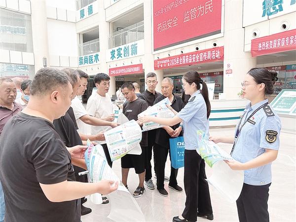 本報(bào)訊(記者 宋風(fēng) 文/圖) 9月3日,周口市市場(chǎng)監(jiān)督管理局港航分局舉行以“藥品安全、監(jiān)管為民”為主題的“藥品安全宣傳周”活動(dòng)。轄區(qū)藥品零售企業(yè)、醫(yī)療機(jī)構(gòu)、化妝品經(jīng)營單位代表及社區(qū)群眾參加活動(dòng)。