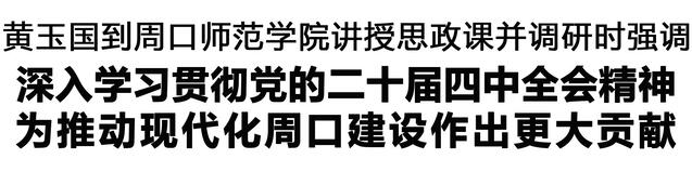 本報(bào)訊 (記者 王艷 劉昂) 12月19日,市委書記黃玉國到周口師范學(xué)院為師生代表講授思政課,宣講黨的二十屆四中全會(huì)精神,并到教學(xué)科研一線調(diào)研。