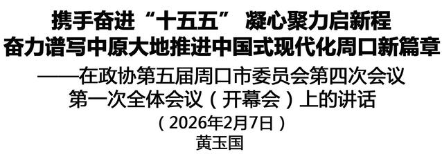 在“十四五”勝利收官、“十五五”開局起步的關(guān)鍵時期,政協(xié)第五屆周口市委員會第四次會議隆重開幕了。這是全市人民政治生活中的一件大事,是廣納群言、廣集眾智、共謀發(fā)展的一次盛會。在此,我代表中共周口市委,向大會的召開表示熱烈祝賀,向全體政協(xié)委員和與會同志致以誠摯問候!