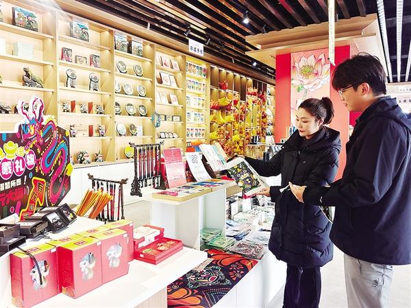12月18日,在太昊伏羲陵文化旅游區(qū)旅游產(chǎn)品展廳,游客在欣賞非遺手工產(chǎn)品。近年來(lái),太昊伏羲始祖旅游區(qū)運(yùn)營(yíng)管理有限公司為豐富游客體驗(yàn),聚焦非遺手工、潮玩手辦等主題,開(kāi)發(fā)了近百個(gè)旅游新產(chǎn)品,以滿(mǎn)足游客多元化需求。 ...[詳細(xì)]