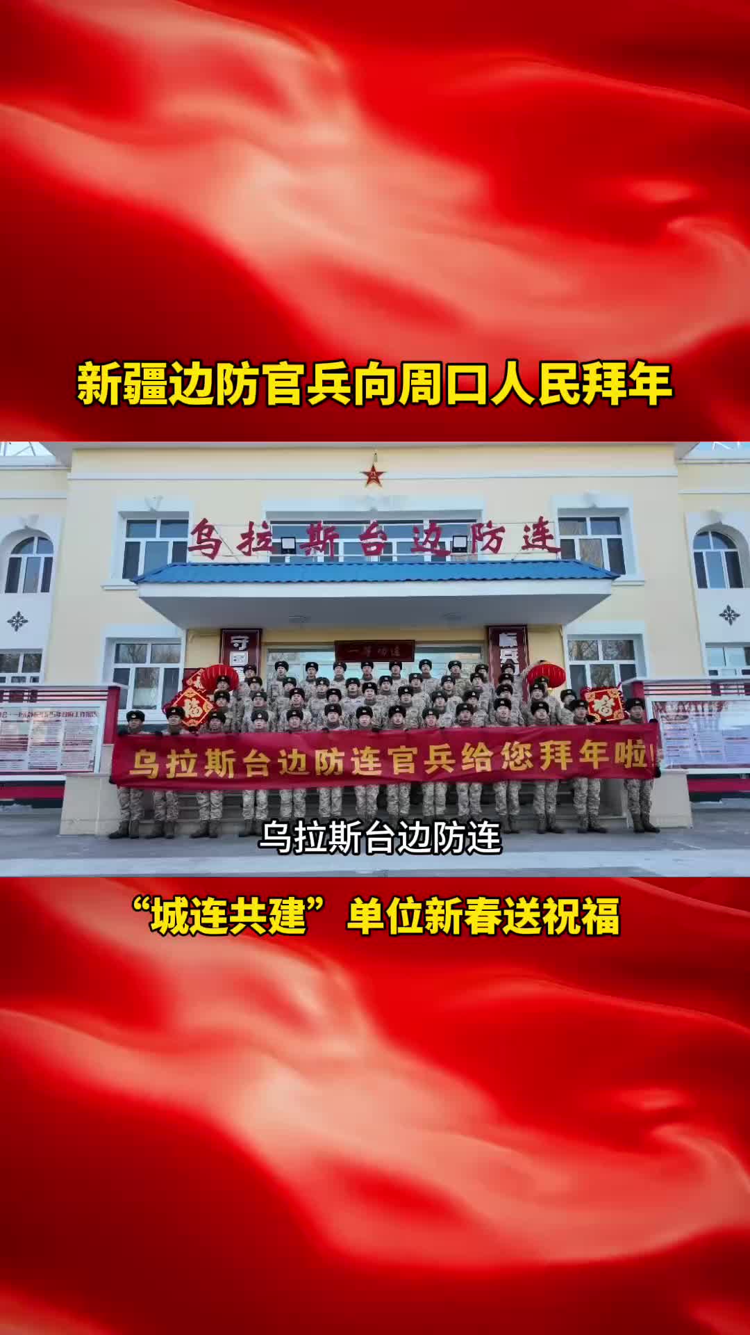 新疆軍區(qū)烏拉斯臺(tái)邊防連是周口市的“城連共建”單位,新春將至,官兵們錄制了一段拜年視頻,向周口父老鄉(xiāng)親表達(dá)新春的祝愿!