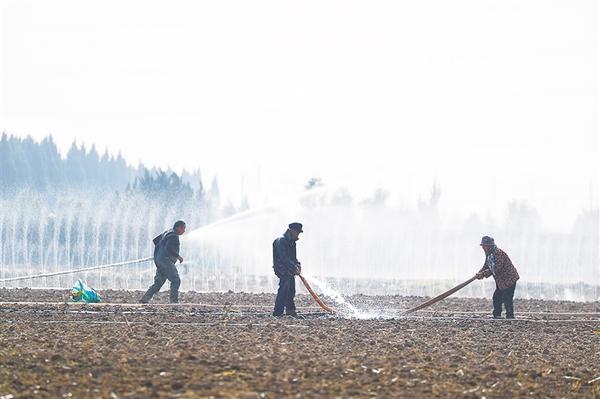 12月1日,在市城鄉(xiāng)一體化示范區(qū)許灣街道蔣橋村,村民們正在灌溉麥田,為小麥越冬儲備水分,確保苗情穩(wěn)健。