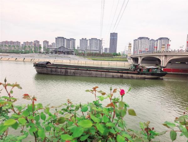 4月11日,沙潁河上貨船穿行,與城市樓宇、跨河大橋相映成趣。作為河南“通江達?!钡闹匾獦屑~,周口的臨港經(jīng)濟正加速崛起。