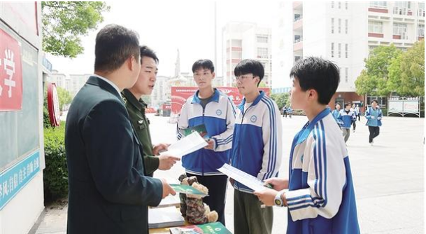 為深入推進國防教育、激發(fā)青年學(xué)子愛國熱情,4月14日,在第十一個全民國家安全教育日來臨之際,陸軍院校國防教育暨招生宣傳活動在鄲城一高舉行。