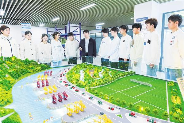師生在學(xué)校“智慧仿真實訓(xùn)室”了解周口港建設(shè)。近日,周口市港航產(chǎn)業(yè)發(fā)展商會、周口城市職業(yè)學(xué)院戰(zhàn)略合作暨“AI+港航創(chuàng)新中心”簽約揭牌。這是我市又一家職業(yè)院校參與周口航運發(fā)展、校企深度合作的生動實踐。記者 劉華志 攝影