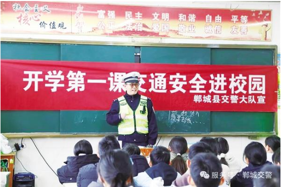 3月5日,民警為師生講解交通安全常識。當(dāng)日,鄲城縣公安局交通管理大隊宣傳小分隊走進轄區(qū)第三實驗小學(xué),為全校師生送上了一堂生動有趣的交通安全“開學(xué)第一課”,切實增強學(xué)生的交通安全意識和自我防護能力,為校園周邊道路交通安全筑牢防線。