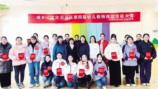為進(jìn)一步提升幼兒教師的專業(yè)技能,近日,市城鄉(xiāng)一體化示范區(qū)社會事務(wù)管理局舉辦第四屆幼兒教師彈唱技能大賽,吸引34名幼兒教師參加。圖一為選手展示才藝。圖二為獲獎選手合影留念。