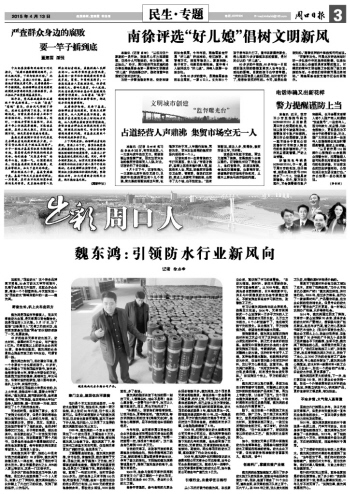 魏東鴻還有更大的設(shè)想,下一步,他打算征地100畝,把3家企業(yè)合并到一起,形成一個(gè)外墻保溫和防水材料的生產(chǎn)基地,并建立研發(fā)中心,研究新產(chǎn)品,更好地保證工程質(zhì)量,增加效益。
