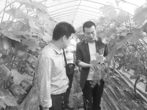 “整個示范園就一個占地100多畝的葡萄園,這里種植的葡萄有荔枝、草莓、玫瑰、茉莉、菠蘿、櫻桃等10多個口味和品種,而且這些葡萄可以做到在不同的月份上市,讓人在不同的時間段,品嘗到不同口味的葡萄……”4月29日下午,記者走進鄧城鎮(zhèn)大學生村官創(chuàng)業(yè)帶富示范園,眼前一棵棵葡萄樹整齊地排列著,碧綠的枝葉掩映下,一個個嫩枝正奮力向上伸著觸角,努力地生長著……滿眼的綠色頓時讓人心情舒暢起來。而走進示范園中的幾座溫室大棚,這里的葡萄生長得更加旺盛,枝葉下面已經(jīng)結(jié)出了幼小的果實,由于是在溫室里生長,采用無公害生態(tài)種植,這里的葡萄最早將在今年6月份上市。