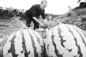 永樂(lè)西瓜夏日甜      5月13日,一名瓜農(nóng)在地里摘收西瓜。日前,廣西百色市右江區(qū)永樂(lè)鎮(zhèn)的西瓜陸續(xù)成熟上市,銷往各地市場(chǎng)。永樂(lè)鎮(zhèn)種植西瓜已有上百年歷史,是遠(yuǎn)近聞名的西瓜之鄉(xiāng),每年農(nóng)歷立夏前后成熟上市。新華社發(fā)