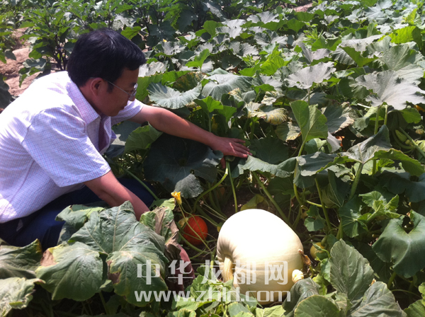 川匯區(qū)蔬菜研究所副所長康俊君蹲下身子撥開綠綠的葉子,指著已長成的太空南瓜(如圖二)說:“現(xiàn)在這個(gè)太空南瓜有十多斤重了,這些南瓜最大可長到幾十斤甚至百斤。”