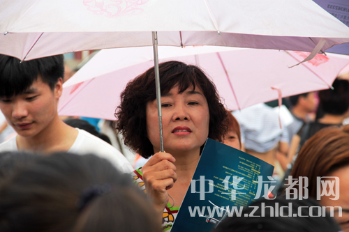 在考場外焦急等待考生考完出來的家長。(戚永/攝)