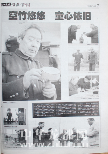 ????大家還記得2004年2月24日《周口晚報(bào)》刊登的一位經(jīng)常在濱河公園抖空竹的老人楊淋森嗎?熟知他的市民一定發(fā)現(xiàn),最近幾年在濱河公園怎么也找尋不到這位抖空竹的老人了。是老人抖空竹更換了地點(diǎn),還是老人搬遷到了其他城市?12月6日上午,帶著這些疑問(wèn),記者找到了78歲的楊淋森老人,聽(tīng)他講述了與晚報(bào)結(jié)緣的故事,并了解了他時(shí)下的生活狀況。