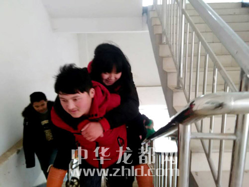 ????雷偉每隔幾天就背一次孔雪珂,這已成了他學(xué)校生活的一部分?!俺宋冶晨籽╃嫔舷聵峭猓覀儼嗥渌?6個男生也都背過她。我作為班長,理應(yīng)多做一些?!卑芽籽╃姘踩偷浇淌?,雷偉有點不好意思地說,“第一次背她,我有點兒害羞,但如今已經(jīng)習(xí)慣了?!?/p>