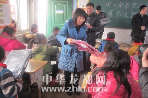 ???????2月3日,共青團(tuán)項(xiàng)城市委在該市開展了“關(guān)愛(ài)留守兒童”溫暖冬日活動(dòng),志愿者把圍巾、帽子、書包等愛(ài)心物品送給蓮花辦事處徐樓行政村的留守兒童,為他們送去溫暖和關(guān)愛(ài)。 晚報(bào)記者 金月全 攝 線索提供 張紀(jì)友