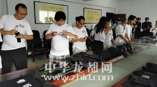 ????“他們是錚錚鐵骨的漢子!”看過特警訓練后,眾多網友紛紛稱贊。特警隊員們在會議室向網友們展示了特警裝備、槍支器械及防彈衣、防彈頭盔等裝備,網友們各個躍躍欲試,拿起槍支警械紛紛攝影留念,真正過了一把特警癮。
