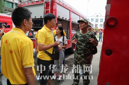 ????當(dāng)日上午10時(shí)30分,網(wǎng)友記者們一行來到了周口市公安消防支隊(duì)特勤中隊(duì)。消防官兵首先向網(wǎng)友講解了生活中的消防安全小常識(shí)和注意事項(xiàng),介紹了滅火器的使用方法以及家庭消防安全知識(shí)和火場逃生技巧等。接著,組織網(wǎng)友參觀了滅火水罐車、登高平臺(tái)車、照明車、搶險(xiǎn)救援車等執(zhí)勤車輛和搶險(xiǎn)救援裝備器材,對于消防搶險(xiǎn)滅火車輛,網(wǎng)友們都充滿了好奇。講解員詳細(xì)描述了每一輛消防車的功能,感興趣的網(wǎng)友還親自坐了坐消防車,過了把當(dāng)消防員的癮。隨后,講解員帶領(lǐng)大家來到車庫,網(wǎng)友們還認(rèn)識(shí)了解了水槍、戰(zhàn)斗服的不同分類及使用方法。熱心網(wǎng)友李土豆親自還試穿了戰(zhàn)斗服和搶險(xiǎn)救援服,變身消防員拍照留念。穿著戰(zhàn)斗服的李陽激動(dòng)地說:“消防戰(zhàn)士太不容易了,這身衣服加上裝備少說也有幾十斤,我們的戰(zhàn)士們不僅要穿著它們進(jìn)火場,還要靈活地完成各項(xiàng)救援任務(wù),消防戰(zhàn)士太偉大了!”