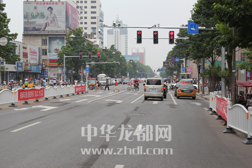 ????據(jù)了解,隨著七一路(六一路至中州大道段)的升級(jí)改造完成,該路段路面拓寬,通行非常暢通,還增加了很多人性化、都市化的設(shè)施:雙向4車(chē)道變成雙向9車(chē)道,路口的紅綠燈變成雙信號(hào)燈(圖一),取消了安全島,重新施劃了非機(jī)動(dòng)車(chē)道和行人斑馬線(xiàn)(圖二),增加了左轉(zhuǎn)帶調(diào)頭標(biāo)線(xiàn)等。
