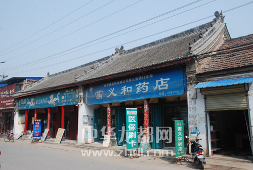 ????雷義和·龍義和中藥鋪位于西華縣逍遙鎮(zhèn)西街路北。雷義和·龍義和中藥鋪是目前豫東南地區(qū)發(fā)現(xiàn)的現(xiàn)存不多的老字號(hào)建筑。該建筑坐北朝南,為硬山式建筑,分上下兩層。