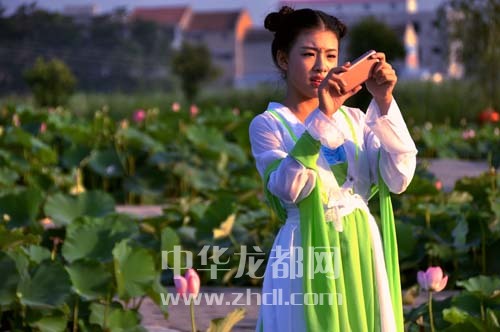 ????淮陽(yáng)龍湖國(guó)家濕地公園荷花品種眾多、花期長(zhǎng)達(dá)3個(gè)月,每逢周末,游人紛至沓來(lái)。日前,一群來(lái)自周口市區(qū)的古裝秀愛(ài)好者在這里撫琴弄簫、漫步花叢,仿佛穿越時(shí)空、從唐詩(shī)宋詞中走出的仙子,如夢(mèng)如幻,宛若仙境。